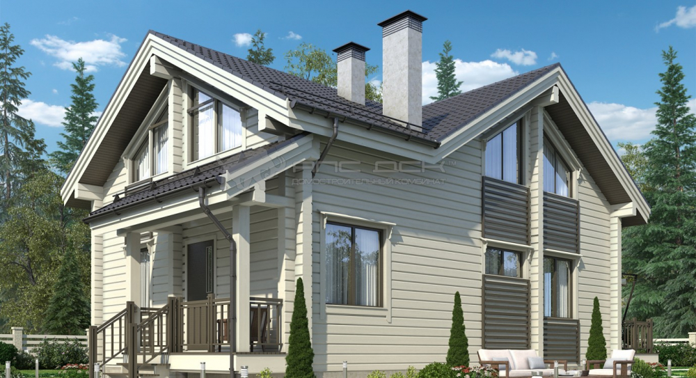 Элегантный дом из клееного бруса площадью 170 м² в скандинавском стиле. Два этажа с четырьмя спальнями наполнены светом и воздухом. Битумная черепица придает кровле особую выразительность. Современное прочтение северных традиций.Характеристики