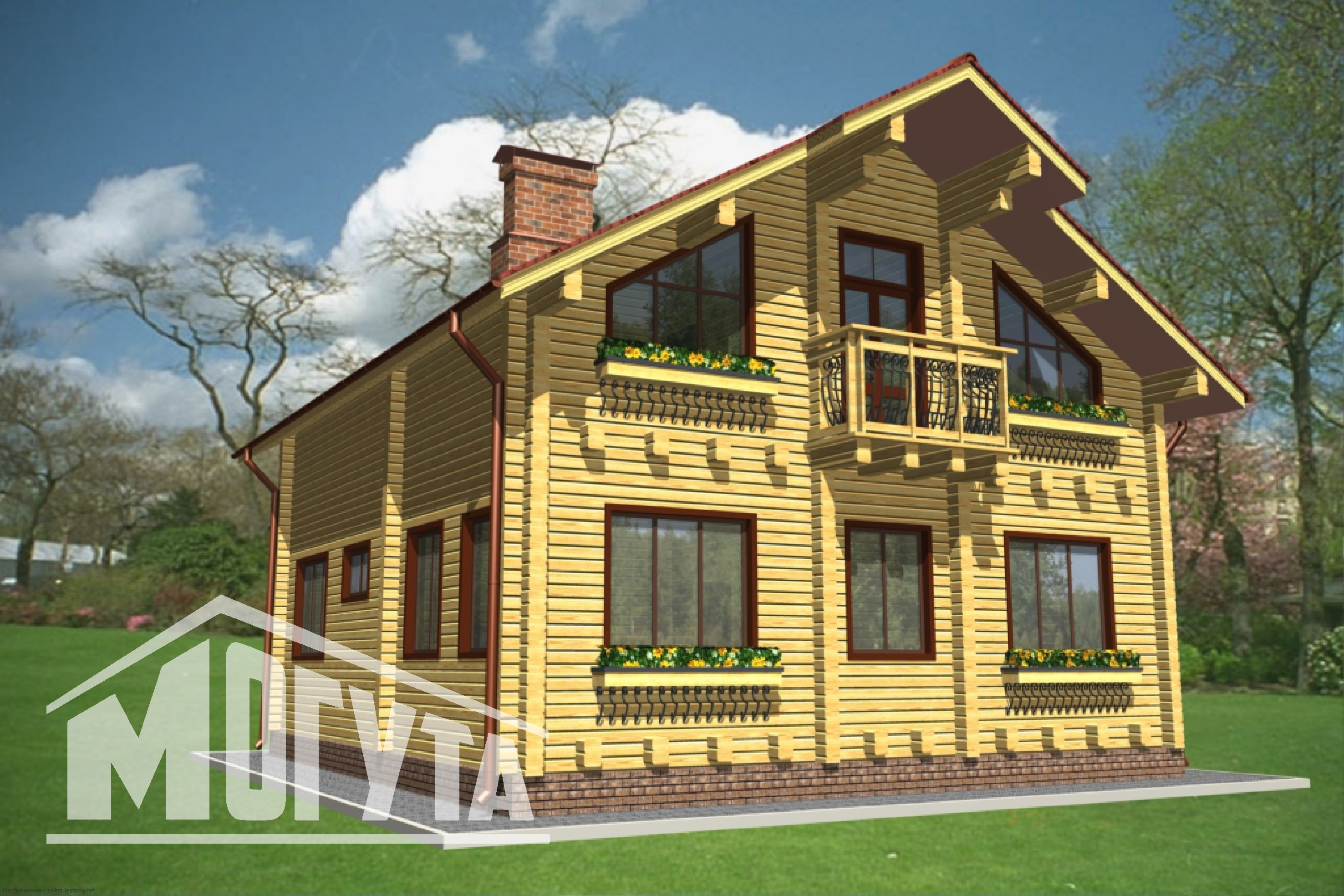 Элегантный двухэтажный дом площадью 147 м² из бревна в стиле модерн — это сочетание традиций и современности. Три спальни и металлочерепица делают его отличным выбором.Характеристики
