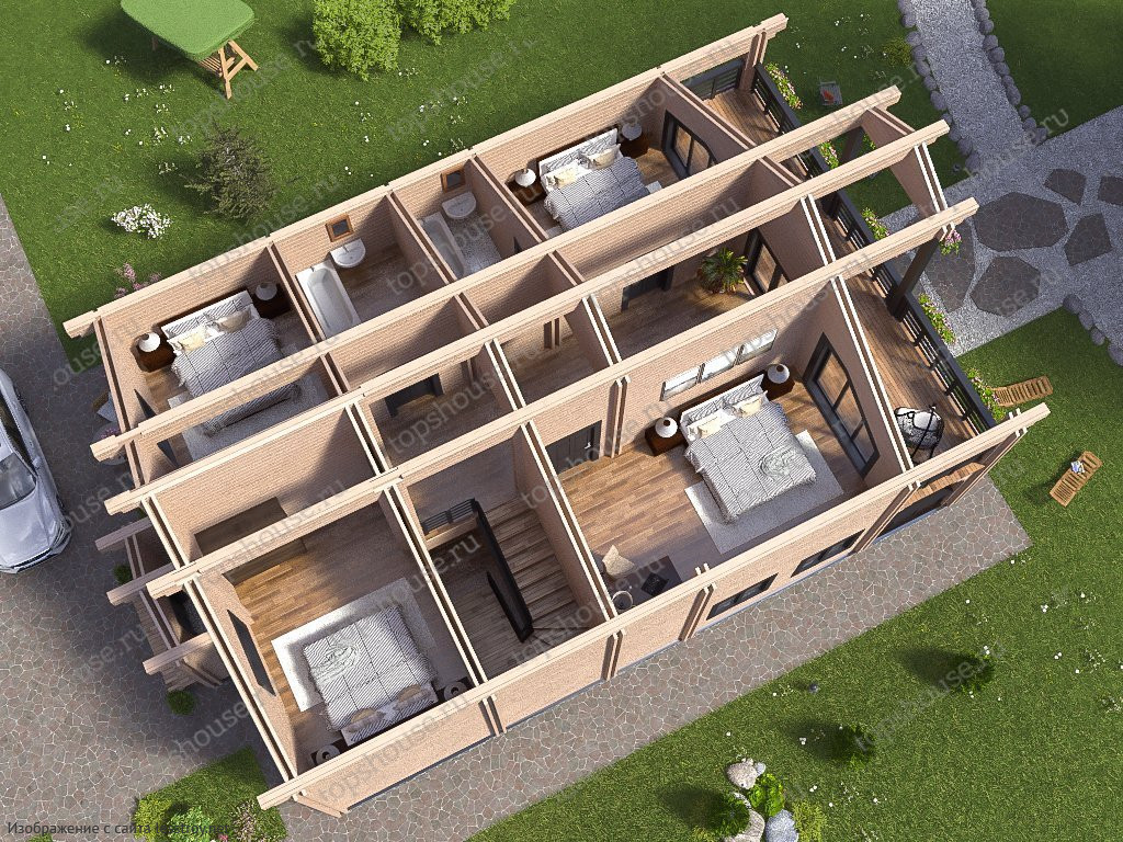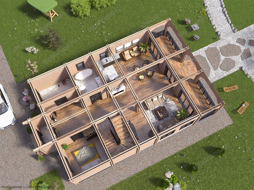 Просторный дом площадью 240 м² из двойного бруса с металлочерепичной кровлей идеален для большой семьи. Четыре спальни и двухэтажная планировка обеспечивают комфорт. Натуральные материалы создают здоровую атмосферу. Проект отличается продуманной организацией пространства.Характеристики