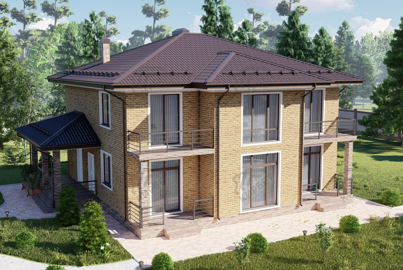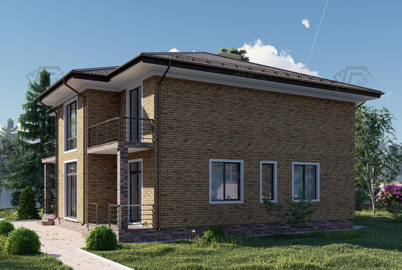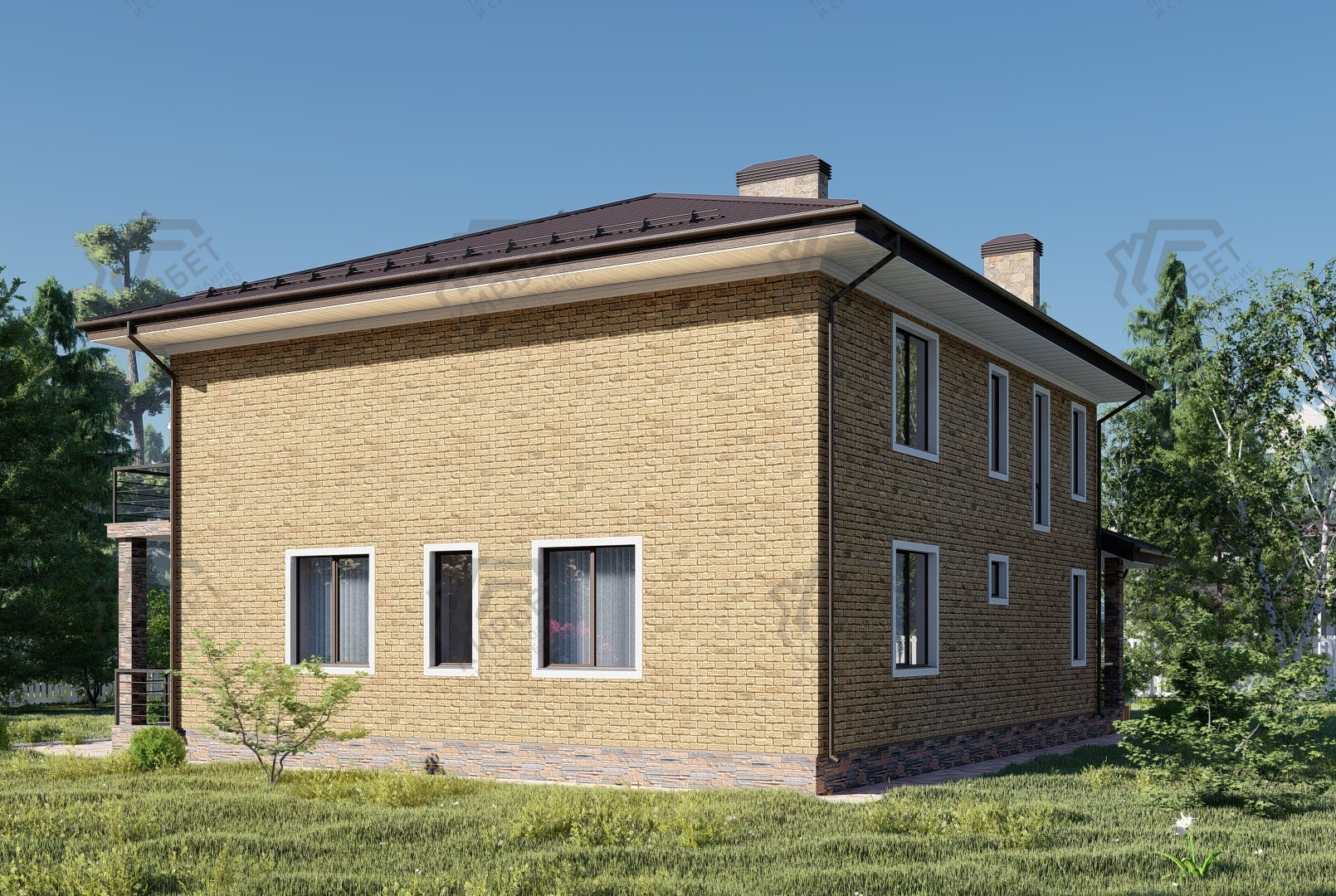 - Тип кровли: Дома с четырехскатной крышей (вальмовой)