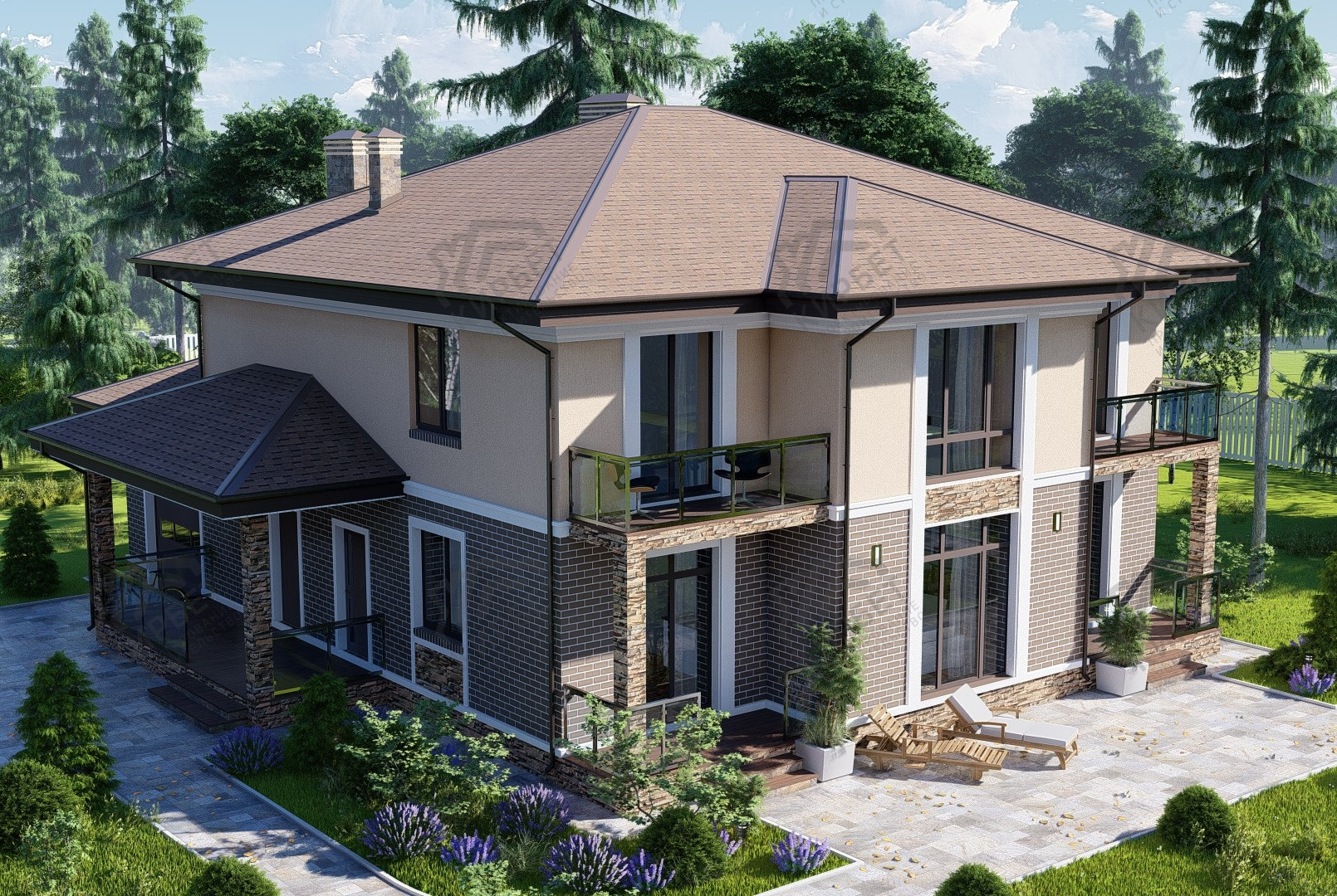 - Тип кровли: Дома с четырехскатной крышей (вальмовой)