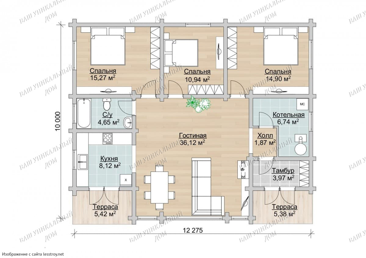 Проект одноэтажного дома Проект брусового дома 7,5х8,5 ДБ-74 Лесстрой