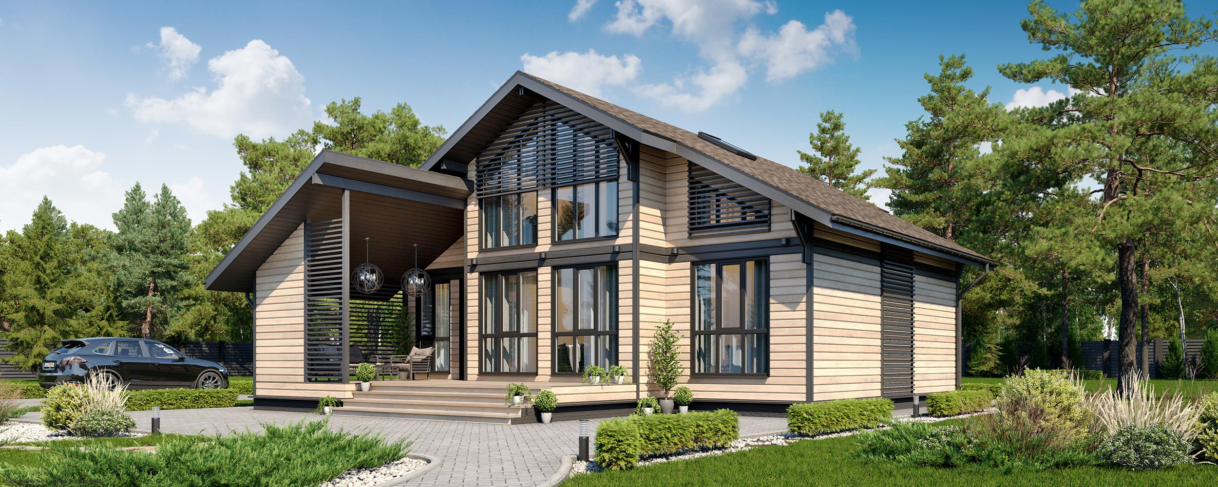 - Форма: Прямоугольные дома