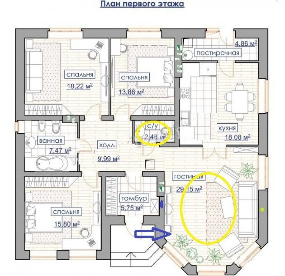 - Общая площадь: 125 м2
