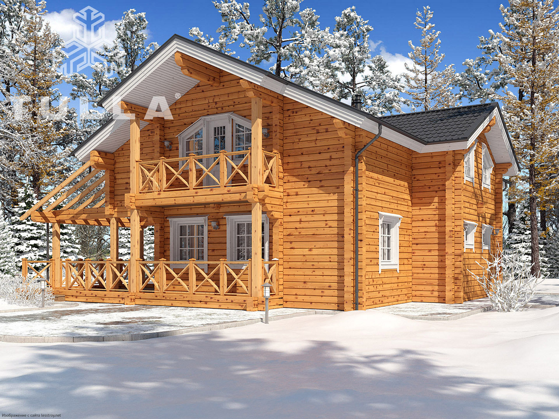 В этом доме чувствуется современный дух и семейная идиллия.160 м² позволяют создать как уединённые, так и общие зоны. Выбор бруса обусловлен его теплоизоляционными свойствами. В качестве кровли использована металлочерепица — материал, проверенный временем. Двухэтажная современная планировка создаёт идеальные условия для жизни всей семьи.Характеристики