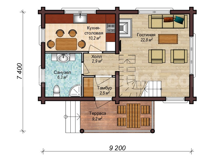 Бревенчатый дом площадью 108 м² с жилыми 80 м² излучает природное тепло и уют. Пространство организовано так, чтобы семья с одним ребенком чувствовала себя комфортно. Интерьер дышит естественностью и спокойствием, а материалы создают ощущение надежности. Это место, где царит гармония и тишина.Характеристики