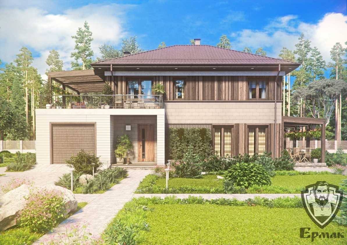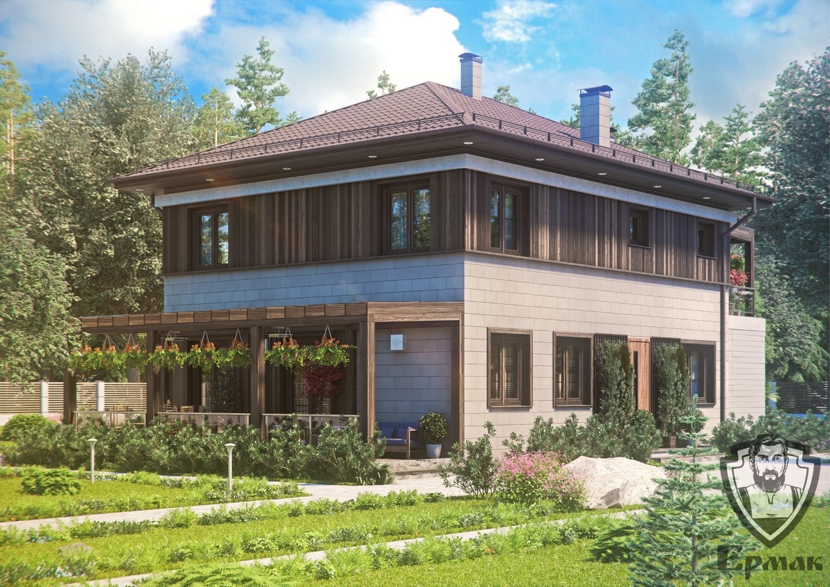 Современный дом из керамоблоков площадью 151 м² с четырьмя спальнями идеален для семьи. Металлочерепица и стиль модерн делают его элегантным.Характеристики