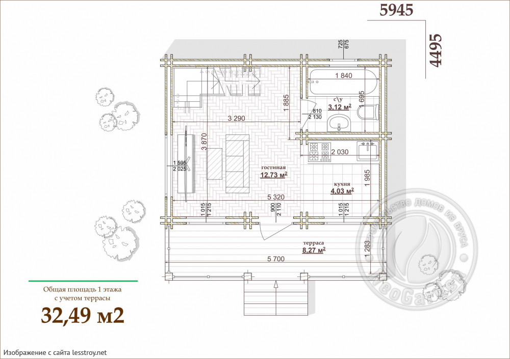 - Общая площадь: 55 м2