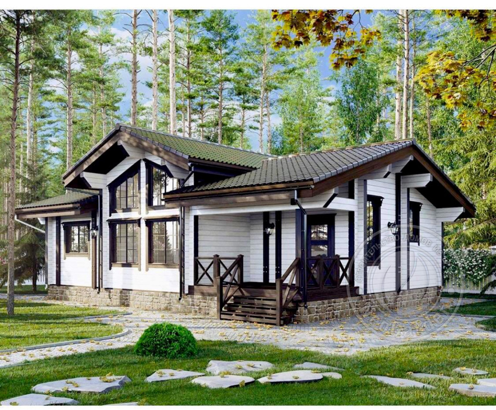 Проект одноэтажного дома Зимний дом из экобруса Монруж