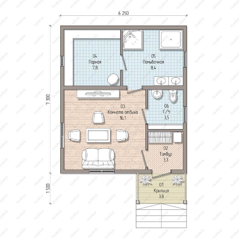 - Внешние стены из СИП панелей Hotwell® 174 мм (OSB-3 Толщина 12 мм, Фасадный самозатухающий пенополистирол ППС16Ф Новопласт/Мосстрой 31)