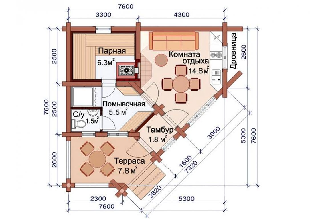 Проект одноэтажной бани АСД-1491