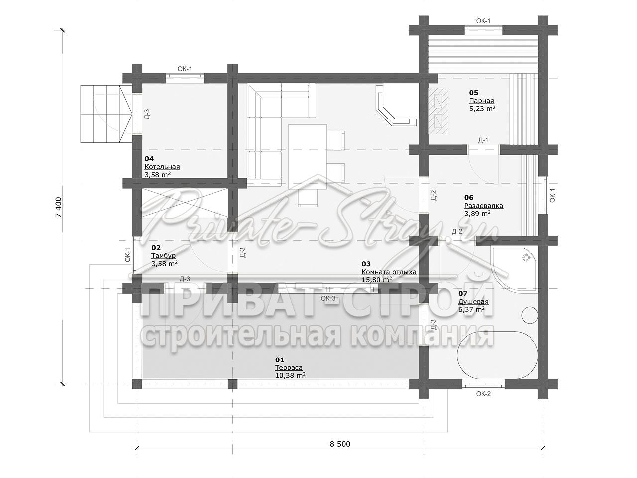 Проект одноэтажной бани Б-57БП