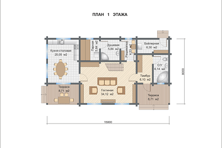 Проект двухэтажной бани Баня из клееного бруса Атланта