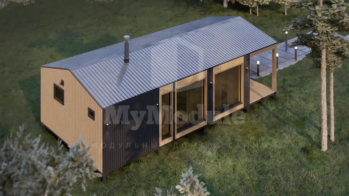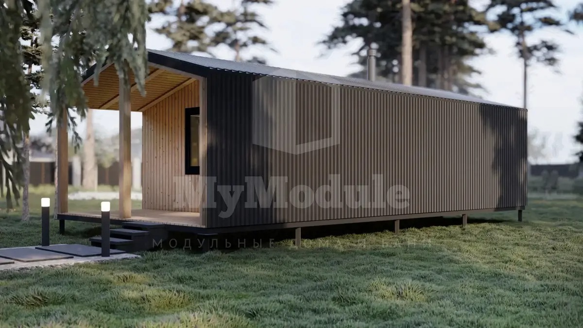 - Внешняя отделка: cтены металл профлист С8 RAL 7024 в сочетании с имитацией бруса с покраской. Кровля металл С20 RAL7024