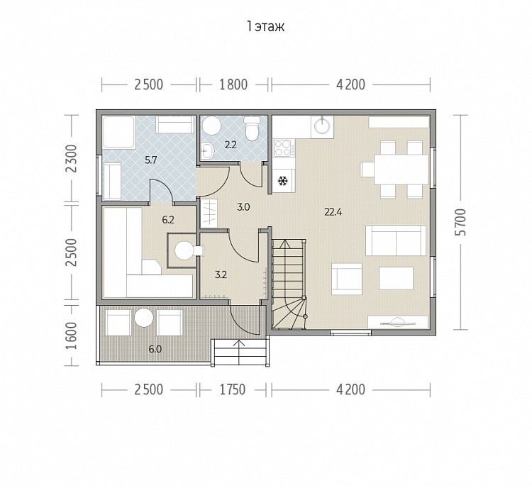 Компактный дом Лада 2 площадью 70 м² с жилыми 54 м² — воплощение практичности и комфорта. Каркасные стены обеспечивают легкость, а профнастил на крыше добавляет надежности. Одна спальня и санузел делают его удобным для небольшой семьи. Свайный фундамент подчеркивает универсальность этого проекта.Характеристики