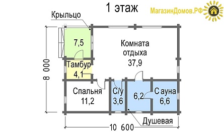 Проект одноэтажной бани S-089-1D