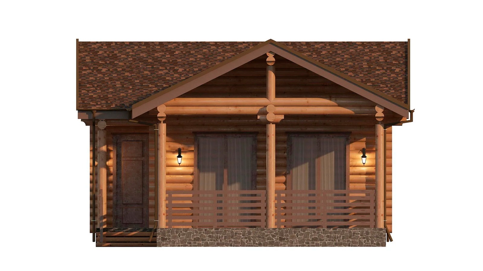 - Наружные и капитальные внутренние стены 1-го и 2 этажей (мансардного), а также фронтоны выполняются из бревна, диаметром 240-250 мм (северный лес, Вологодская область);