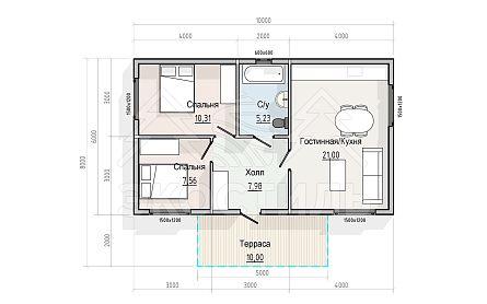 Проект одноэтажного дома Дом из бруса 9 x 12 м | проект Д-35