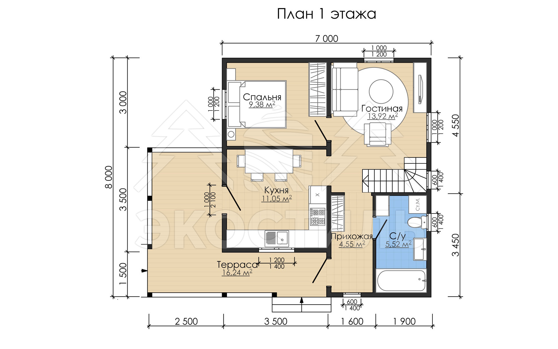 - Площадь кровли: 92 м2