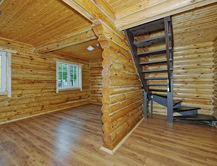 - Наружные стены первого этажа выполняются из материала, выбранного заказчиком для строительства (цельный брус, клееный брус, оцилиндрованное бревно).