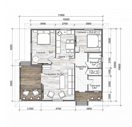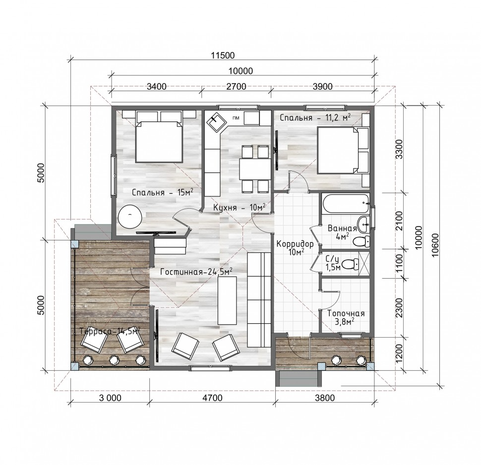 - Окна пластиковые двухстворчатые с двойным стеклопакетом и фурнитурой; возможна замена типа, количества пакетов и размера окон по Вашему желанию.
