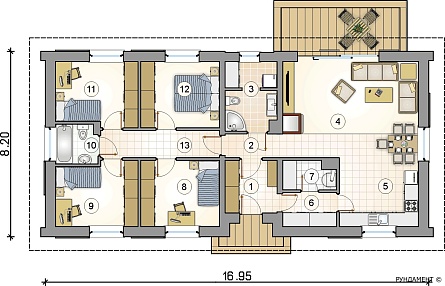 - Монолитный Фундамент РУНДАМЕНТ ИФС-М - выполненный из двух составляющих: 1 этап - монолитная армированная лента в несъёмной опалубке: Монолитная армированная плита в несъёмной опалубке из Эппс и ппс, с шестью нитями армирования арматурой д12, лежащая на песчаной подушке 400мм + Монолитная армированная плита с двойной решеткой армирования (ячейка 00х200мм, из арматуры д10), с нижнем утеплением 100 мм и слоем гидроизоляции, лежащая на песчаной подушке 400 мм, с выполненными закладными под электроснабжение, водоснабжение и выполненной разводкой канализации. Заливается бетоном В22,5 (м300) п4.