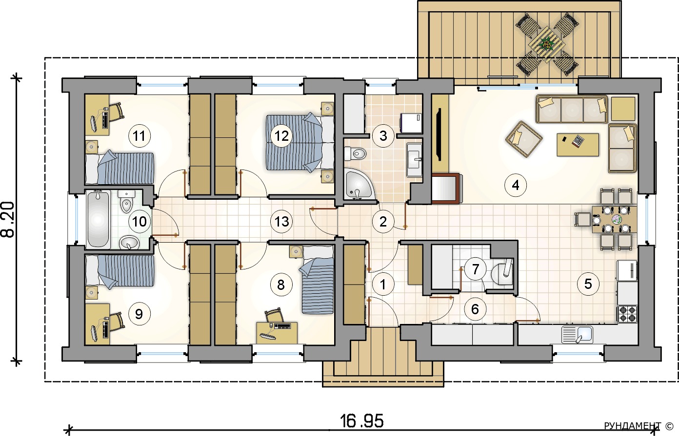- Внутренние межкомнатные Перегородки: из арболитовых блоков, толщина перегородок 200мм.