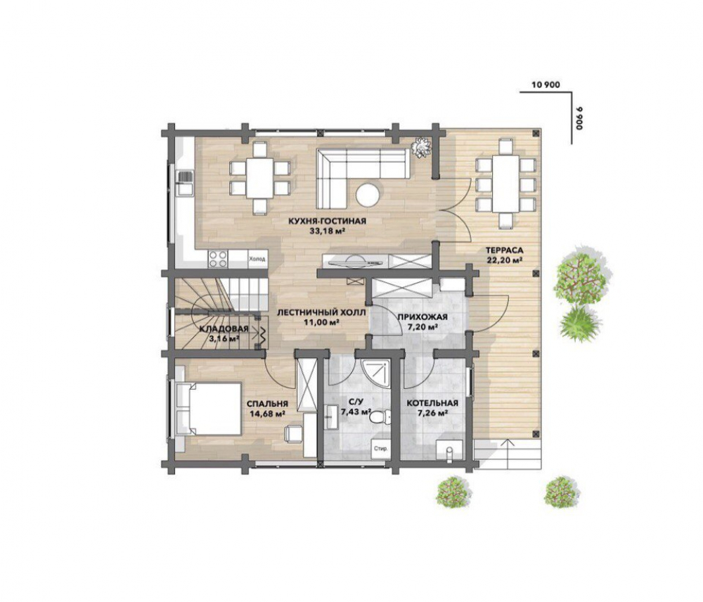 Эстетика, не противоречащая практическим решениям.С такими габаритами — 108 м² — дом будет уютным, но не тесным. Бруса делает дом надёжным при любой погоде. Архитектура выполнена в стиле дома в классическом стиле. Материал кровли — рубероид, что добавляет зданию индивидуальность.Характеристики