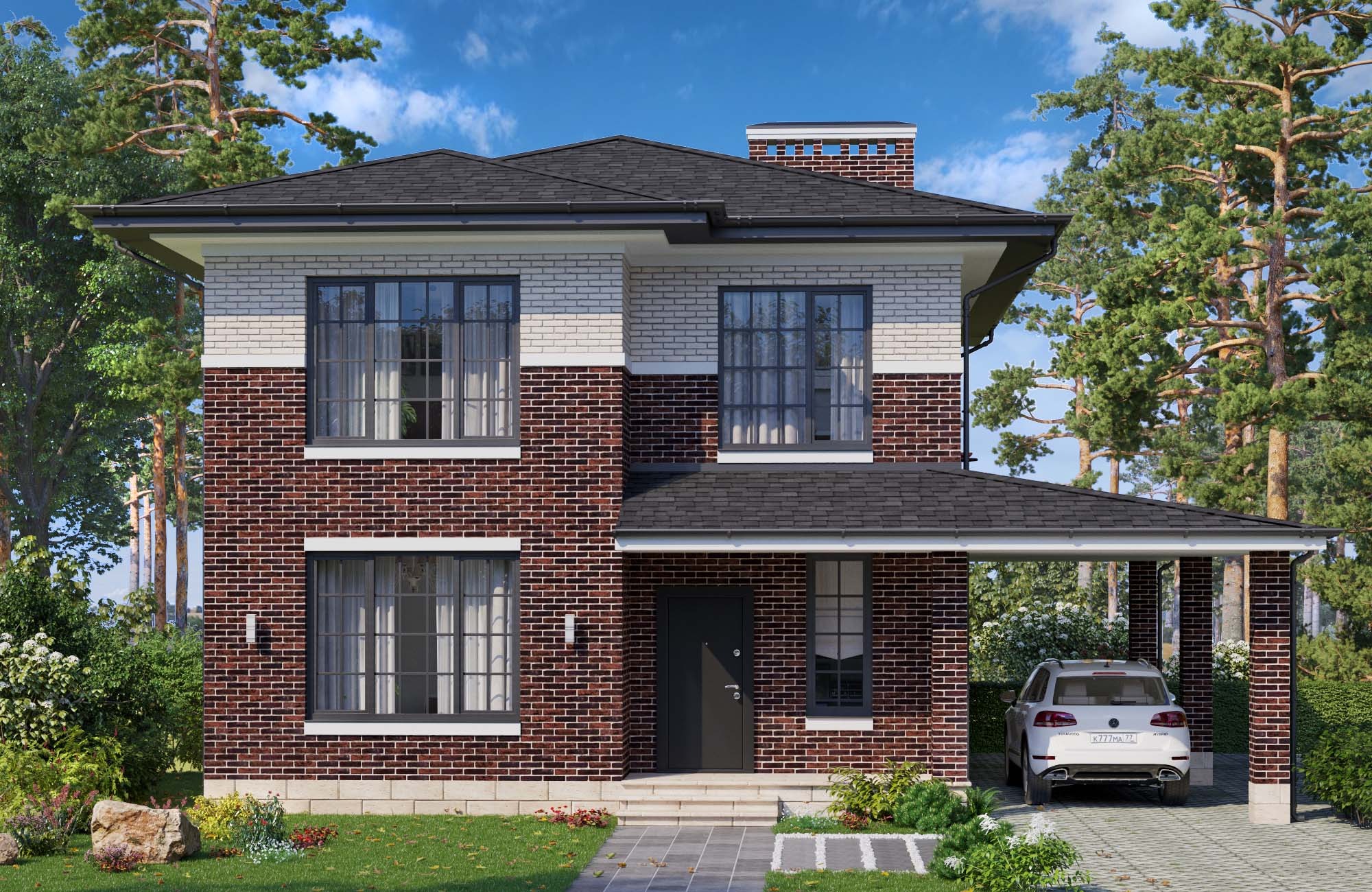 - Отделка фасада: Дома с кирпичной отделкой