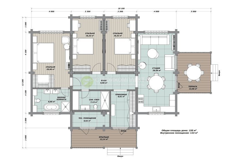 - Общая площадь: 150 м2
