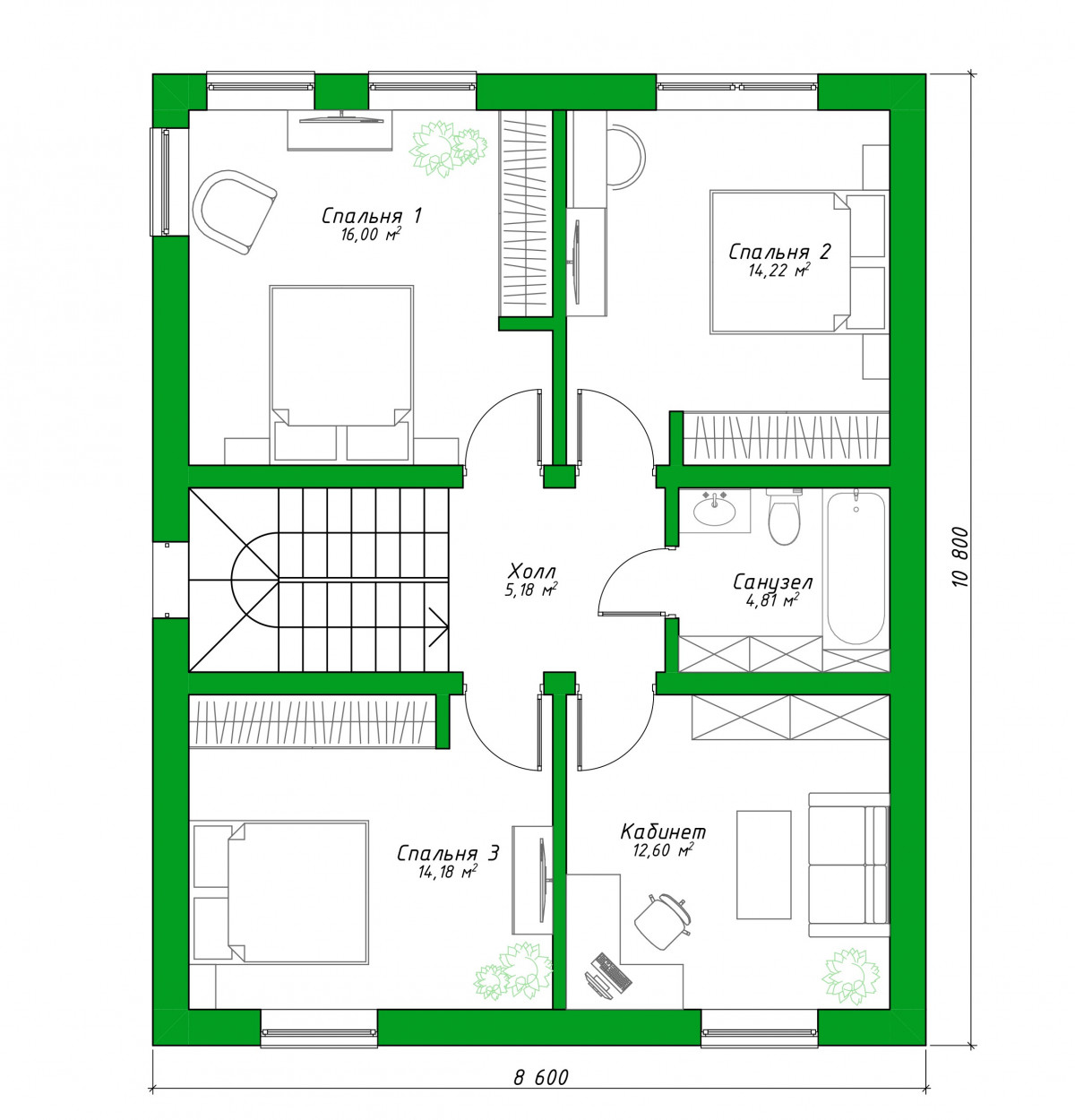 - Наружные стены и несущие перегородки: Газобетонный блок 400 мм