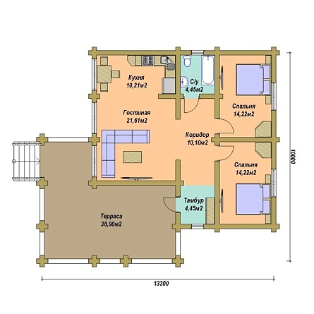 Проект одноэтажного дома Проект одноэтажного сруба ДОМ В ДЕРЕВНЕ - 140м2(10,9м х 14,2м)