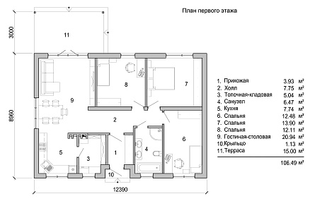 Проект одноэтажного дома №352