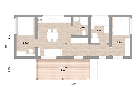 Проект одноэтажного дома Woodhouse 45 Pro