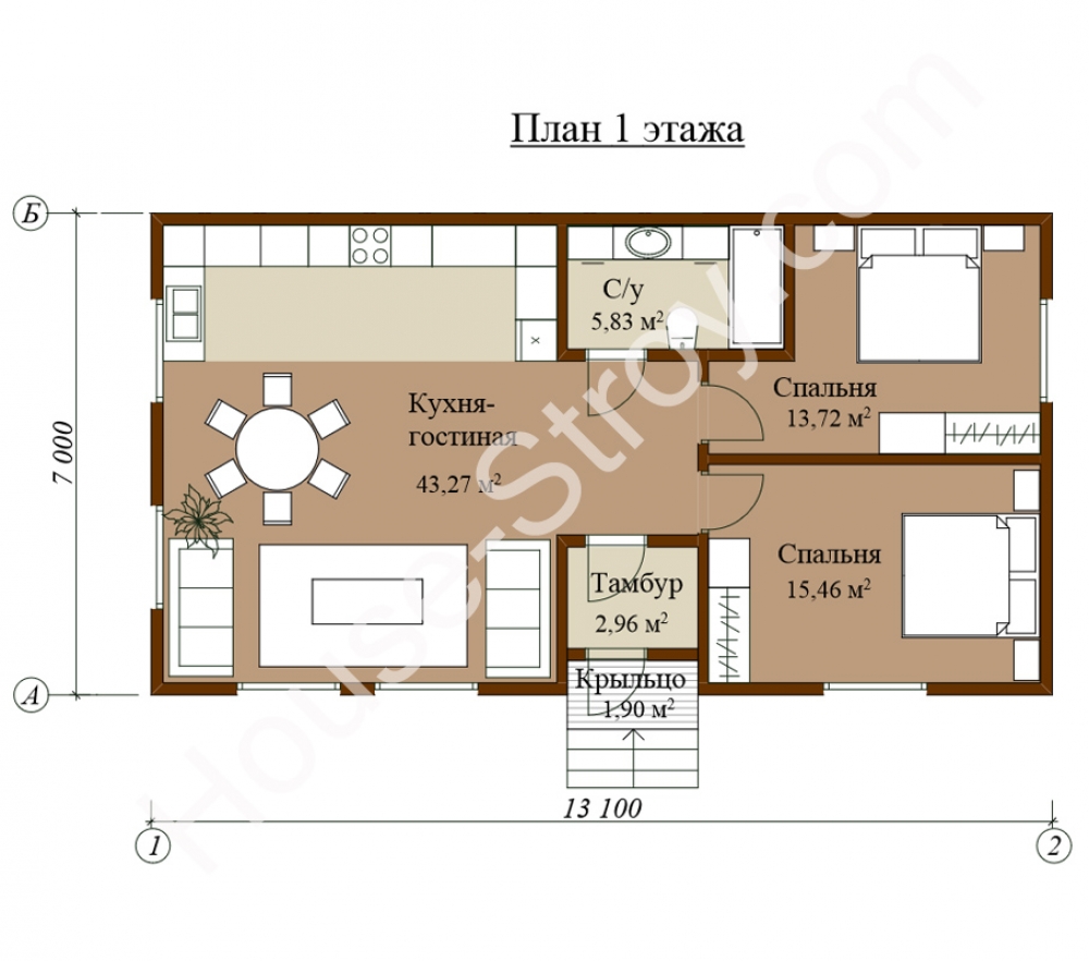 Архитектурный манифест, где функция определяется не модой, а семьей.Площадь 140 м² открывает простор для креативных решений. Двухэтажная рациональная планировка обеспечивает комфортную навигацию внутри дома. Выбор каркаса обусловлен его теплоизоляционными свойствами. Количество спален — 2, делая планировку гибкой.Характеристики