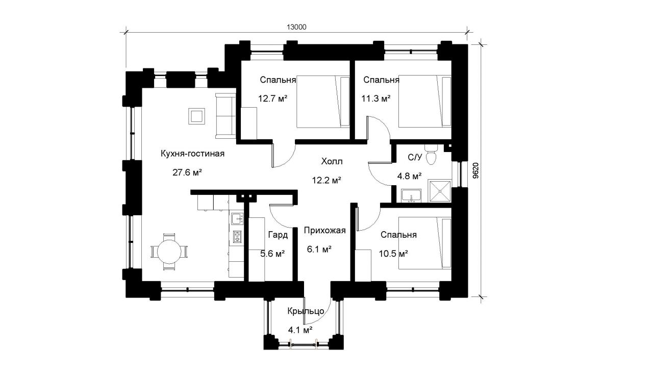 Проект одноэтажного дома 95 м² Арт. 1.23