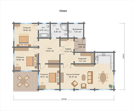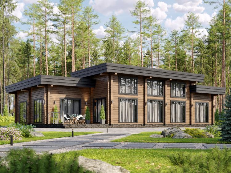 Проект одноэтажного дома ОДНОЭТАЖНЫЙ ДОМ ИЗ КЛЕЕНОГО БРУСА. ПРОЕКТ 12-22
