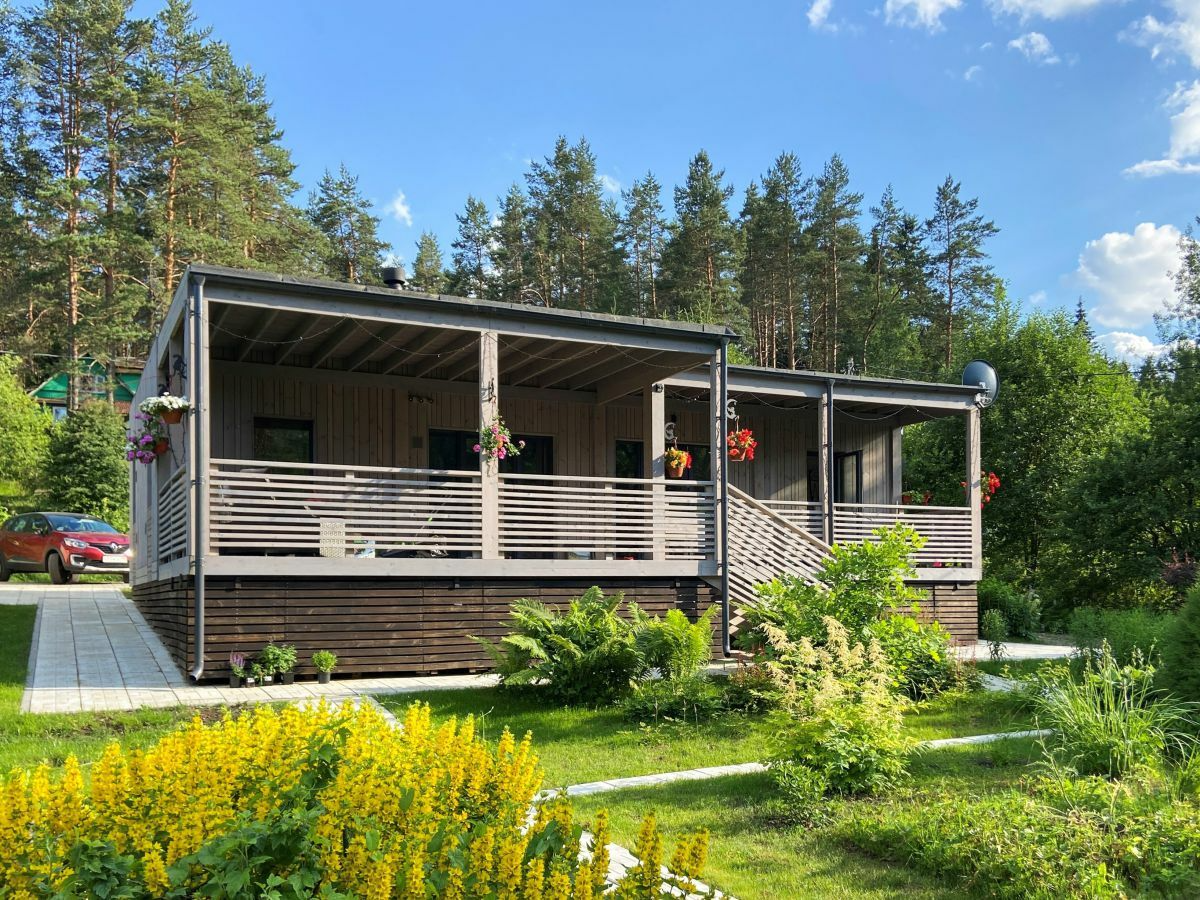 - Стены и потолок — имитация бруса карельского профиля (хвойные породы, сорт АБ, толщина 21 мм, окраска белым лаком на водной основе)