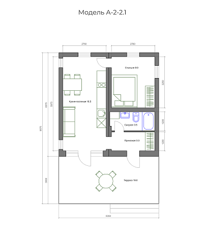 Проект одноэтажного дома 3051 - каркасный дом с плоской крышей с двумя спальнями