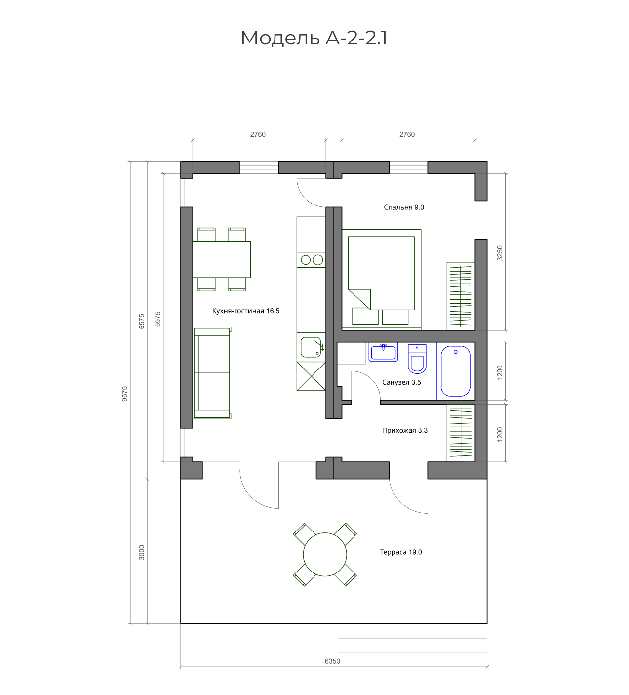 - Кровля — двухслойная наплавляемая рулонная с верхним покрытием из сланца