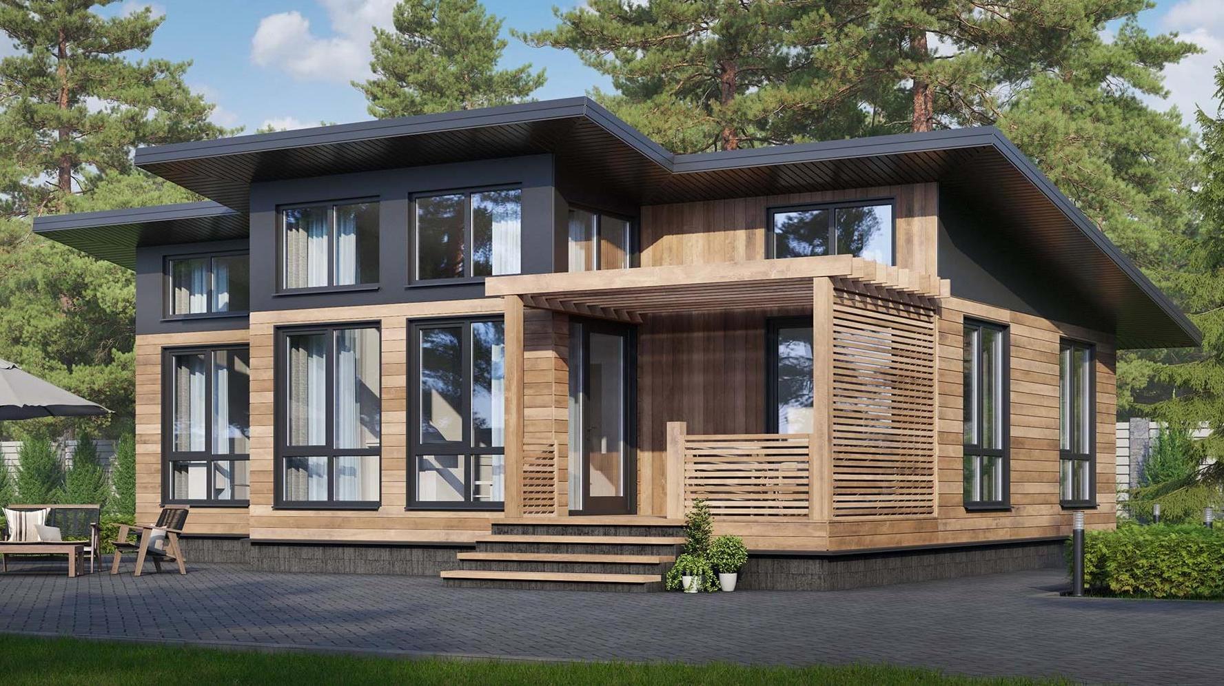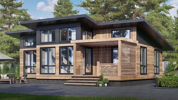 - Каркас — 150 мм, отделка внутри вагонкой 12,5 мм, наружная отделка сайдингом, утепление — 150 мм