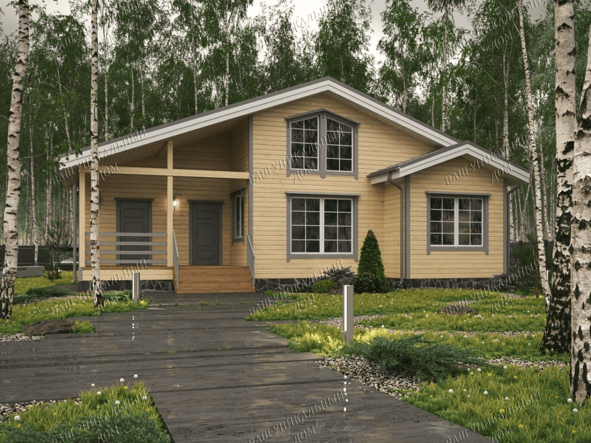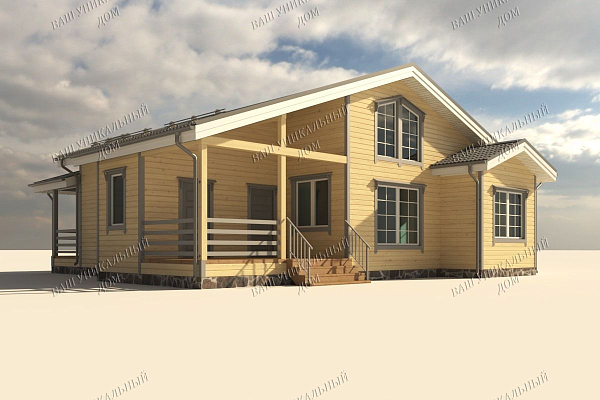 - Отделка фасада высококачественной имитацией бруса