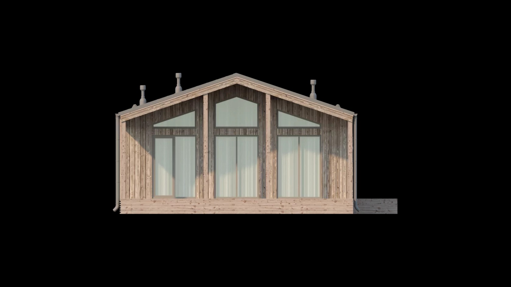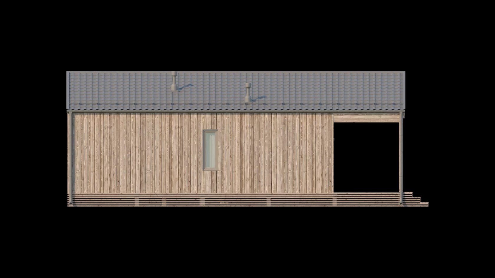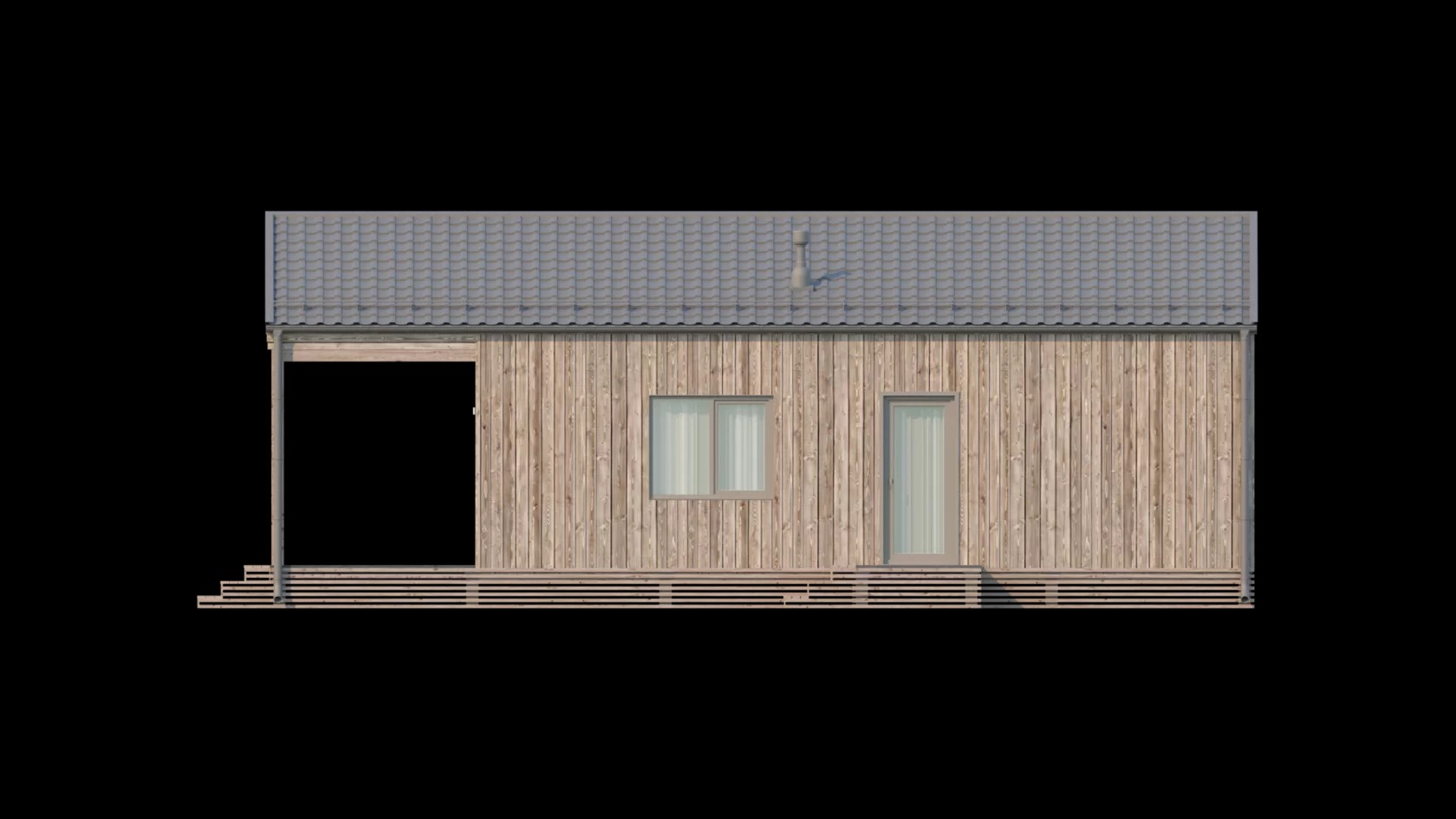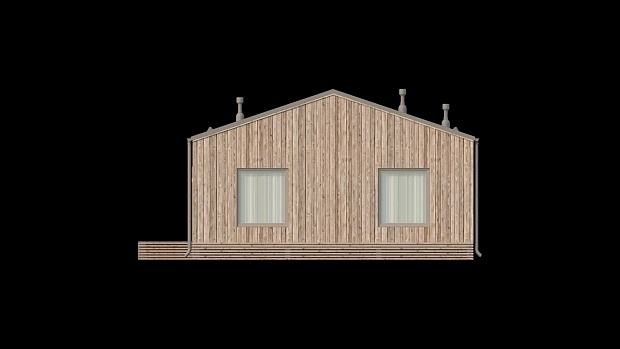 Проект одноэтажного дома Проект 3053 - каркасный дом-барнхаус с двумя спальнями и лофтом