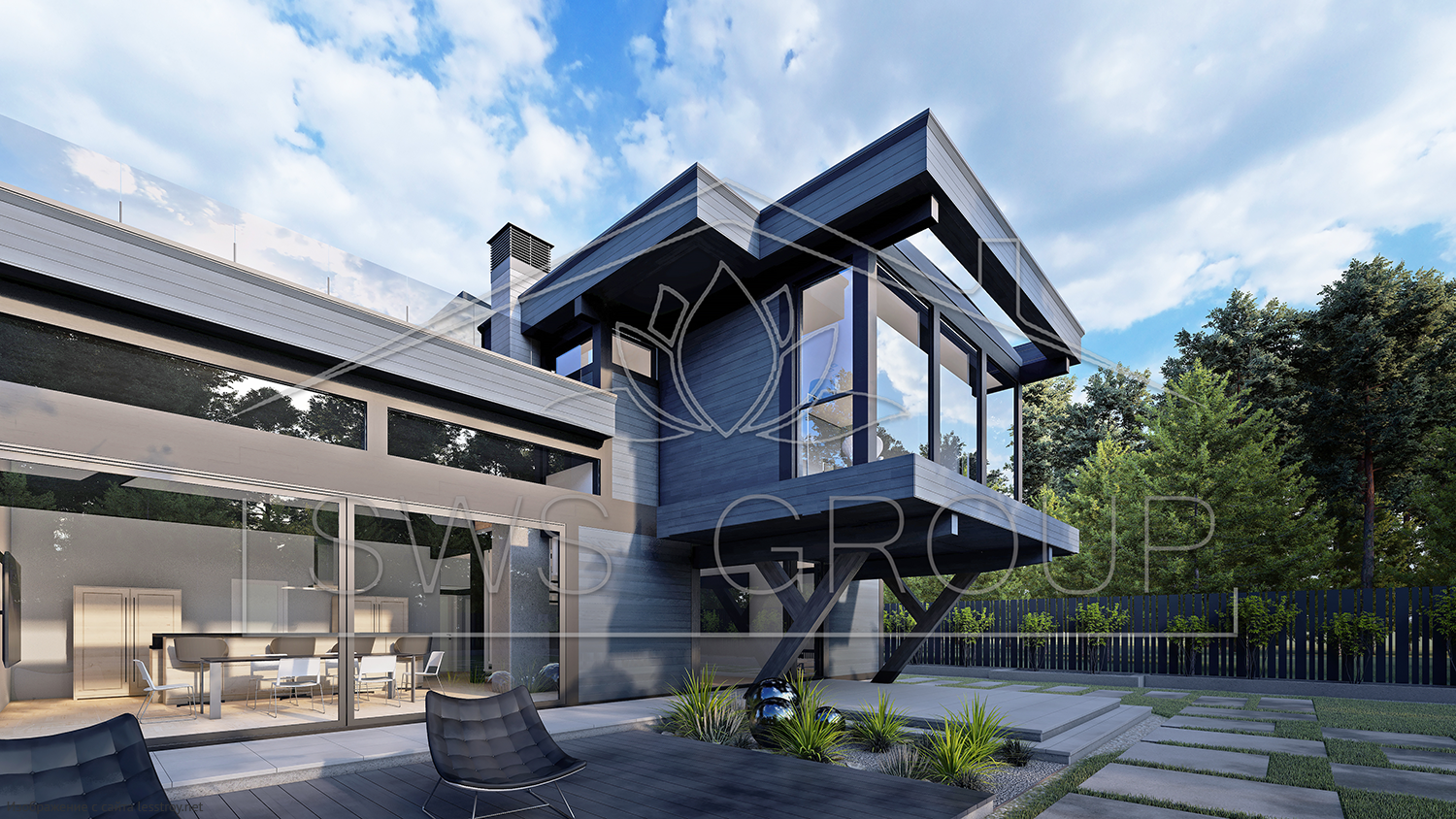 Дом, в котором природа становится частью интерьера.402 м² — это возможность для простора и уюта одновременно. Дом спроектирован в духе дома в стиле фахверк. Проект включает 3 спальни — удобно для семьи. Материал кровли — битумная черепица, что добавляет зданию индивидуальность.Характеристики