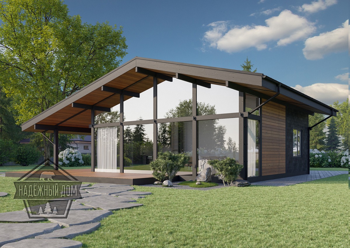 Проект одноэтажного дома Проект дома из бруса 8х11 ДБ-73 с террасой