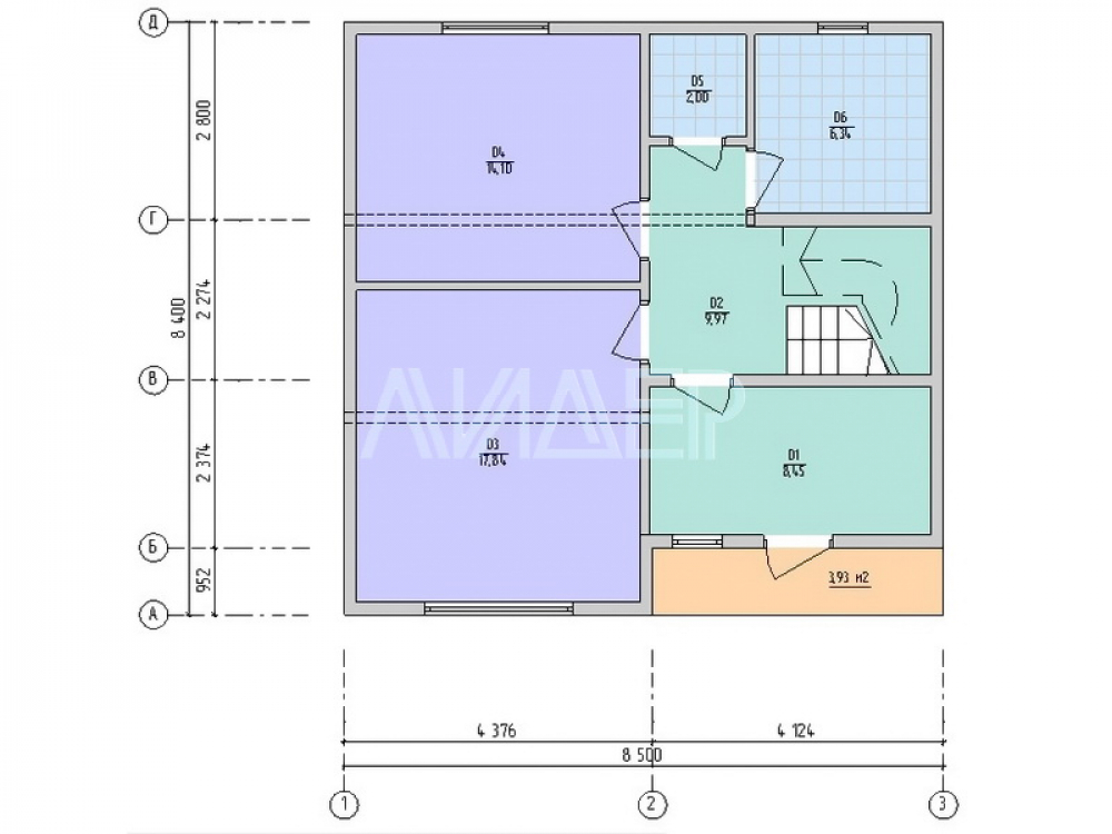 Проект двухэтажного дома Каркасный дом 8х8 (8 на 8), проект двух этажного дома