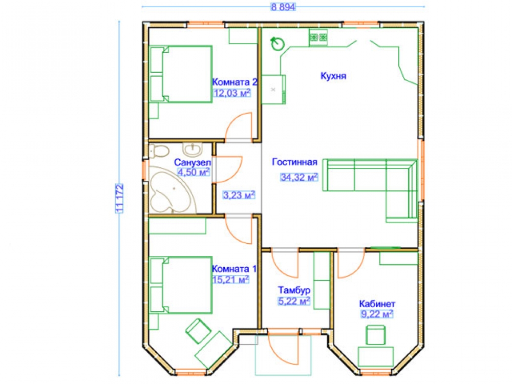 Пространство, помогающее расслабиться. Благодаря 83 м² можно реализовать все бытовые задачи с комфортом. Выбор Каркас обусловлен его теплоизоляционными свойствами. В качестве кровли использована металлочерепица — материал, проверенный временем. Проект включает 3 спальни — удобно для семьи.Характеристики