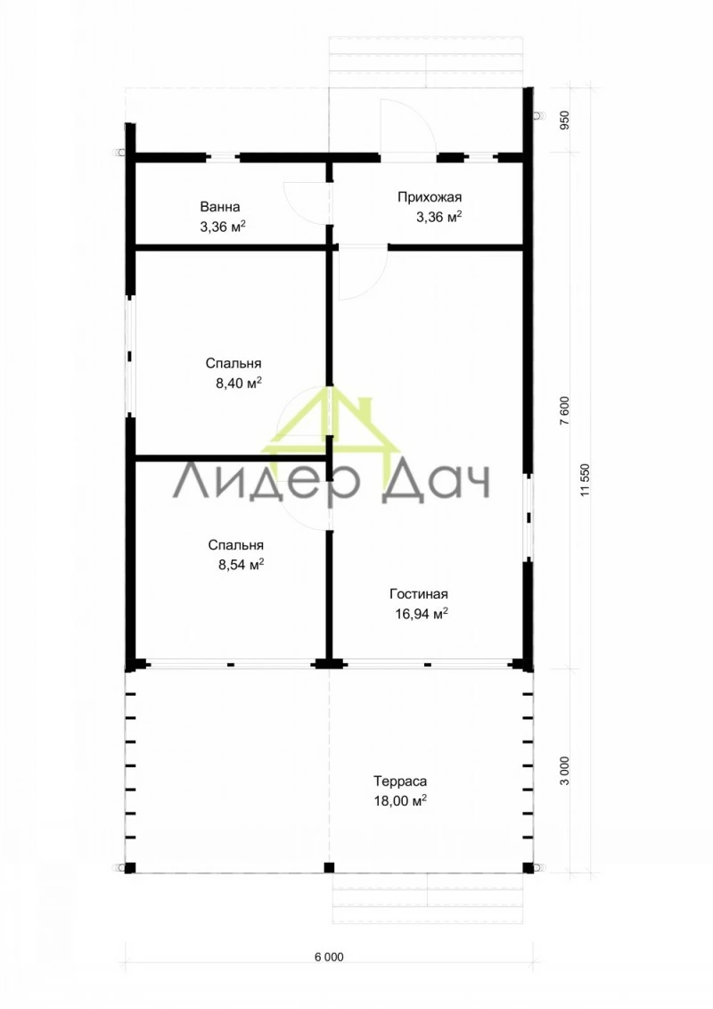 - Общая площадь: 59 м2