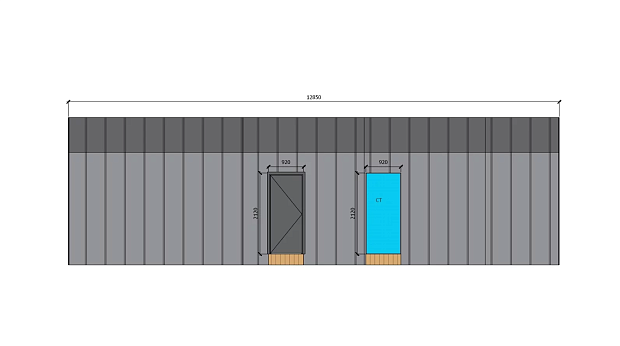 - Входная — теплая финская дверь JELDWEN BASIC серого цвета с комплектующими Abloy (черная ручка и цилиндр) и стоппером для удобства использования.