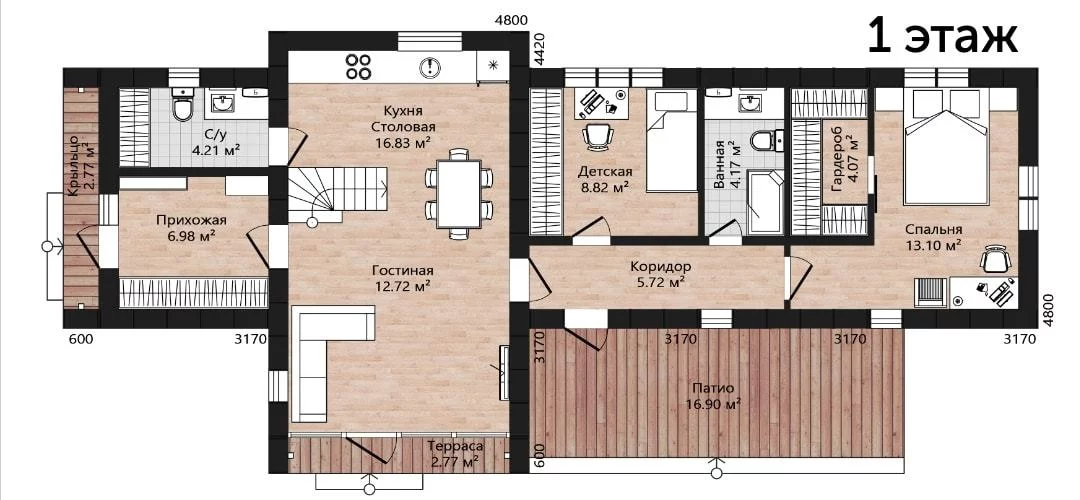 Просторные 106 м² с жилыми 79 м² идеально подходят для семьи с двумя детьми. Каркасная технология гарантирует прочность и энергоэффективность, а светлые интерьеры наполнены воздухом и светом. Лаконичный дизайн подчеркивает современный стиль и практичность. Это надежное жилье для тех, кто ценит качество и уют.Материалы и перечень работ
